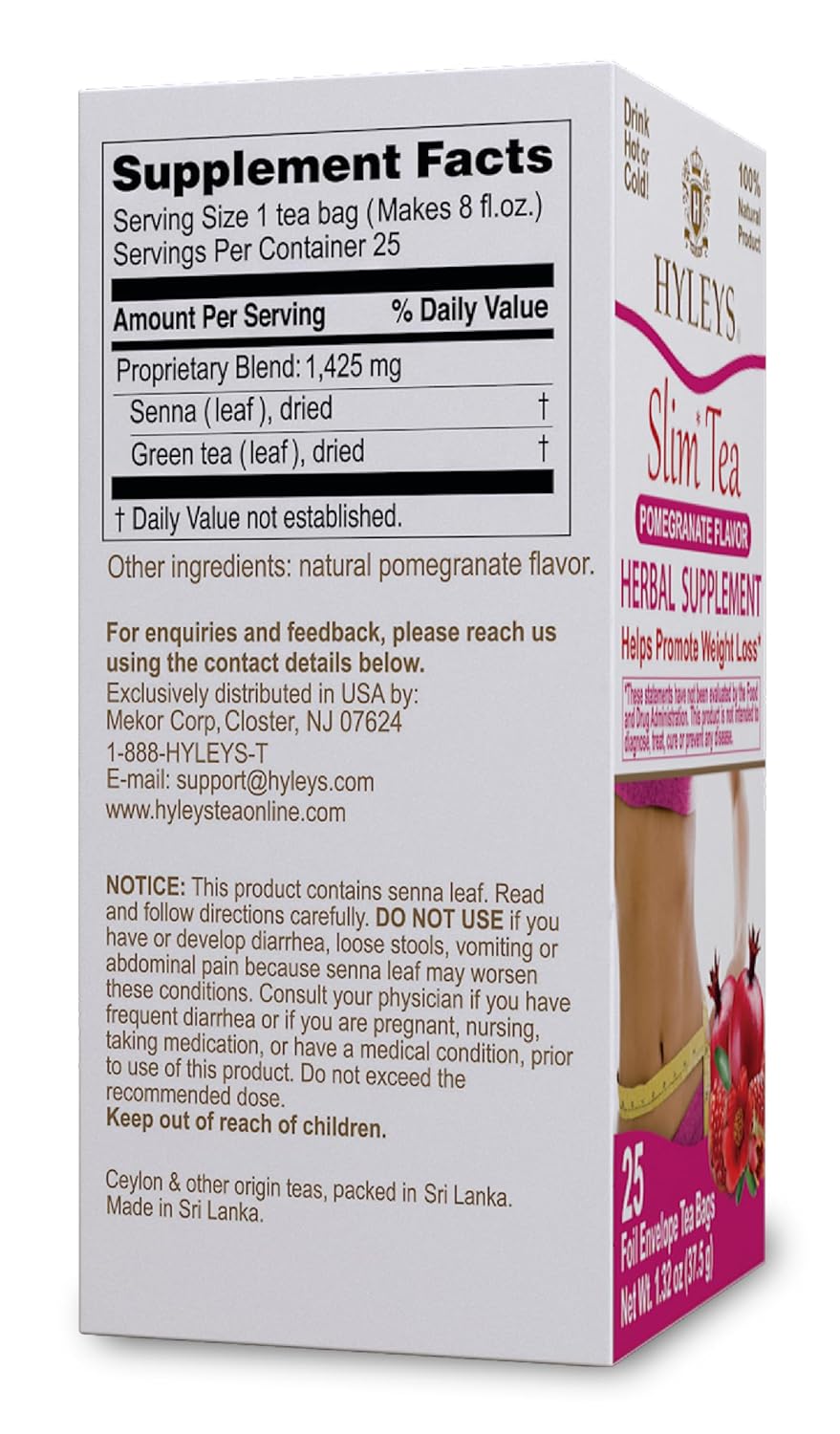 Indulge in the rich, antioxidant-packed flavor of Hyleys Slim Tea Pomegranate while supporting your weight management goals. This premium herbal supplement is Kosher certified, combining ancient wellness traditions with the luxurious taste of sweet-tart pomegranates for a truly satisfying tea experience.