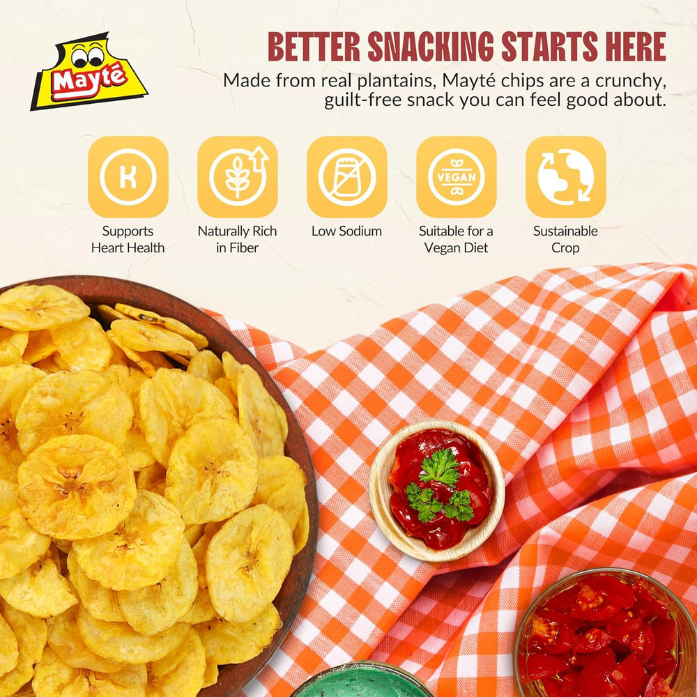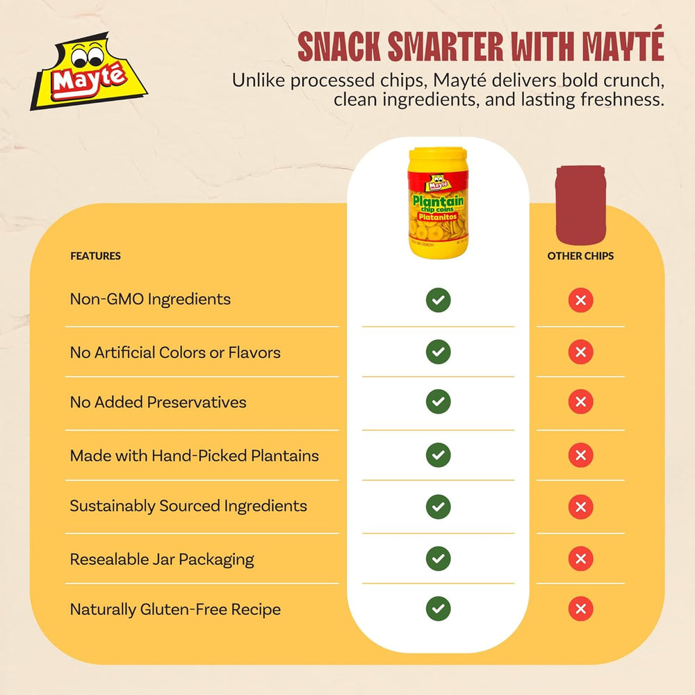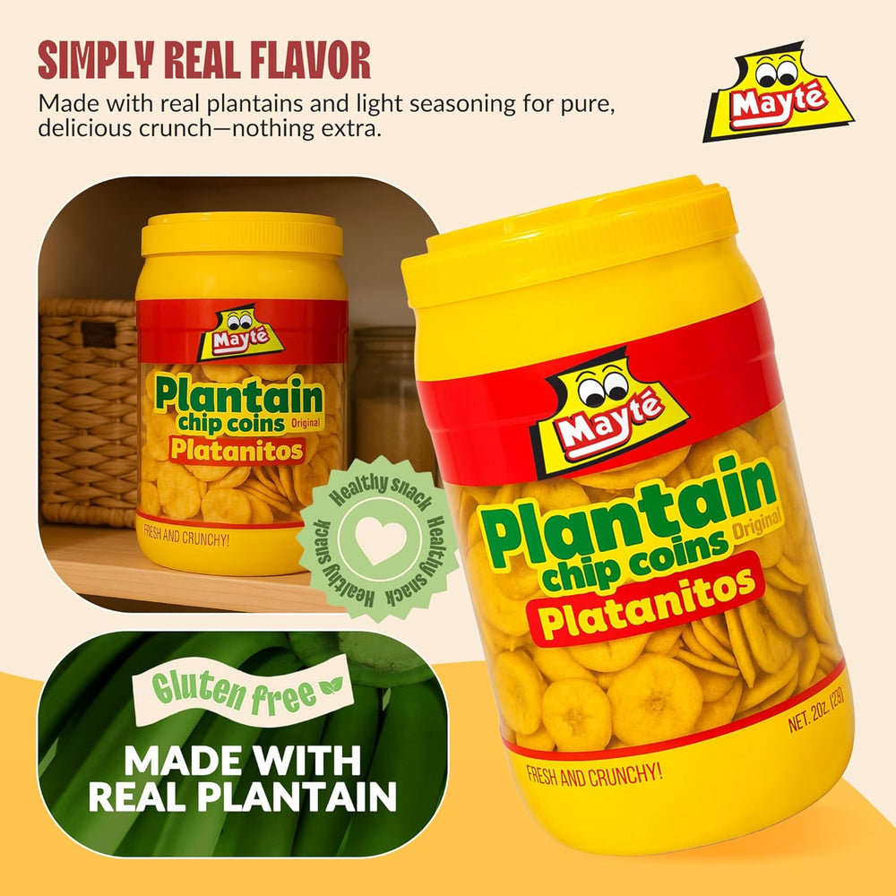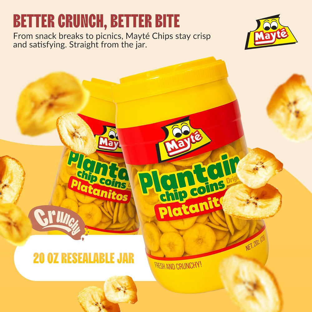 Crispy, golden, and lightly salted, Mayte Plantain Chips deliver the tropical crunch you crave. Made from hand-selected plantains and cooked to perfection, each bite offers a naturally sweet, salty balance that’s impossible to resist. Packed in a large resealable jar to keep every chip fresh and crunchy for days.