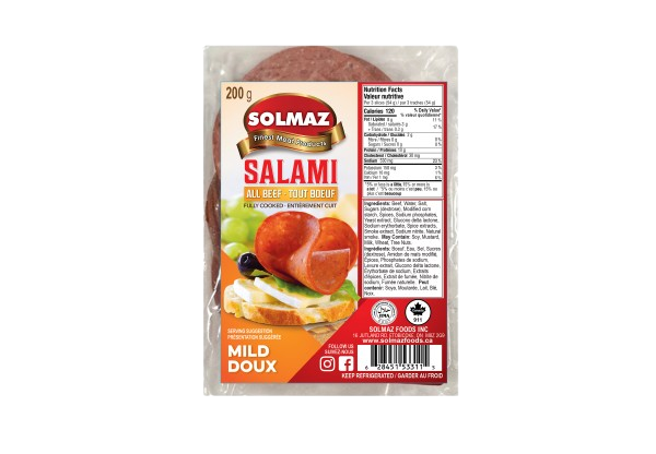 Enjoy the convenience and authentic flavor of Solmaz Sliced Beef Salami Mild, ready to transform any meal into a delicious Turkish experience. This 8 oz (227g) package of HALAL-certified, pre-sliced beef salami features a mild, family-friendly spice level that appeals to everyone from kids to adults. Perfect for quick breakfast spreads, school lunch sandwiches, or afternoon snacks with cheese and olives, these tender slices deliver the savory, slightly garlicky taste of traditional Turkish salam without the heat. No slicing required - just open and enjoy the authentic taste of a Turkish kahvaltı (breakfast) table anytime.
